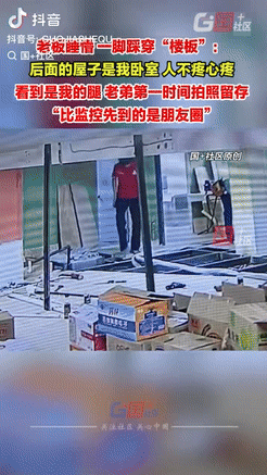 楼下的弟弟听见巨响后抬头,看见一条腿从天花板破洞垂下,竟拿出手机拍摄,还配上了调侃的画外音,直到邻居闻声赶来帮忙,弟弟才放下手机参与救援。